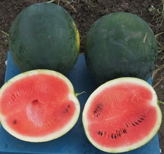 Плоды округлой формы, массой 7–10 кг (при хорошей агротехнике до 12 кг). Кожура тёмно-зелёная, почти чёрная, гладкая. Мякоть ярко-красная, плотная, хрустящая, с высоким содержанием сахара (BRIX 11–12%). Идеально подходит для транспортировки и длительного хранения.