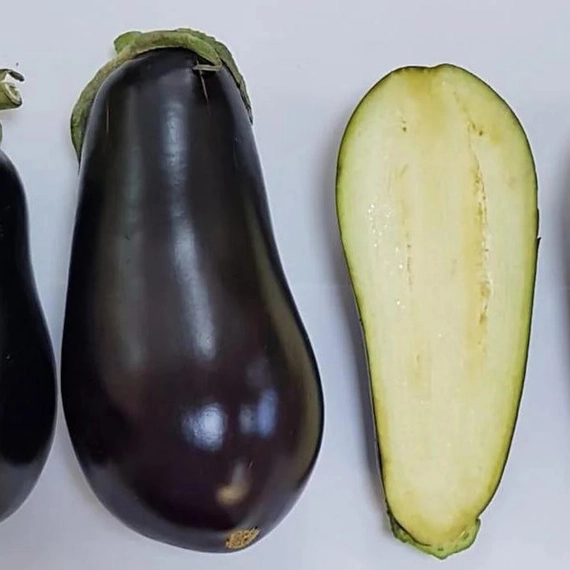 Плоды крупные, каплевидно-вытянутой формы, размером 20-25 см в длину и около 10 см в диаметре, массой до 400 г. Отличаются высокой выравненностью по форме и размеру. Окраска темно-фиолетовая с интенсивным глянцевым отливом. Мякоть плотная, белая, с малым количеством семян (практически без семечек) и полным отсутствием горечи.