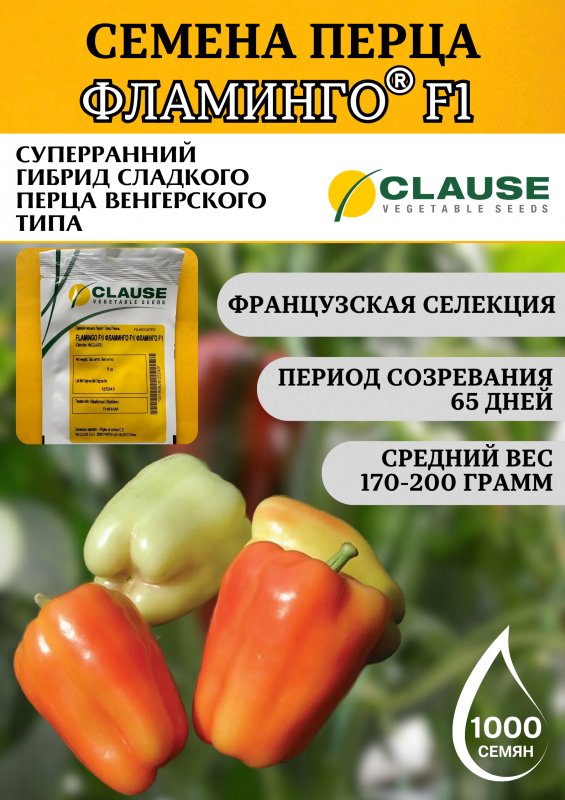 Фламинго F1 — суперранний гибрид сладкого перца от компании Clause сортотипа Венгерский. Исключительная скороспелость в сочетании с устойчивостью к стрессам и болезням делает его идеальным выбором для получения ранней продукции.